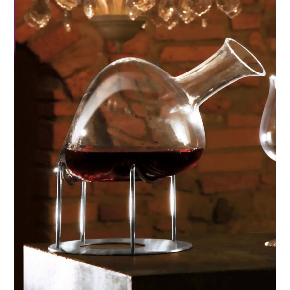 Il decanter per vino rosso più spettacolare e versatile tra le collezioni di decanter per vino IVV. Il design è studiato per consentire di posizionare il decanter sull'apposito supporto in acciaio in tre diverse posizioni: verticale o sdraiato e, per farlo asciugare una volta lavato, capovolto. Il vetro è interamente soffiato a bocca.