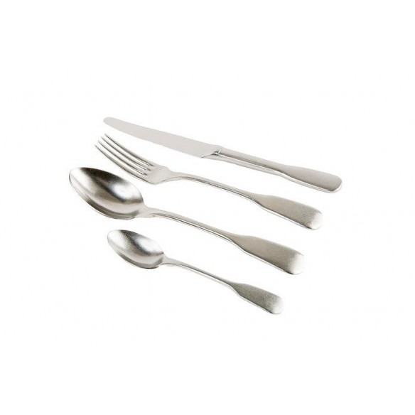 Servizio posate Brick Lane composto da : 12 coltelli tavola, 12 coltelli frutta, 12 forchette tavola, 12 forchette frutta, 12 cucchiai tavola, 12 cucchiaini.