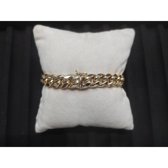 Bracciale in oro giallo 18 kt, maglia "grumetta" , lunghezza 20,5 cm. Peso totale 22,10 g.