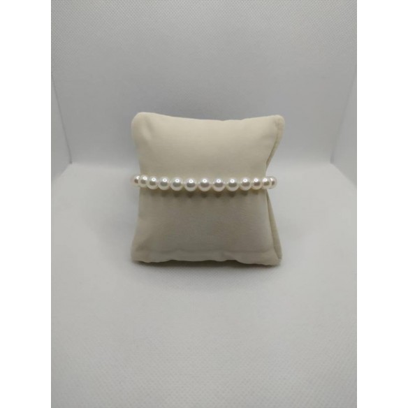 Bracciale con perle Akoya di diametro 6,5/7 mm con chiusura in oro bianco e brillante di kt 0,005.