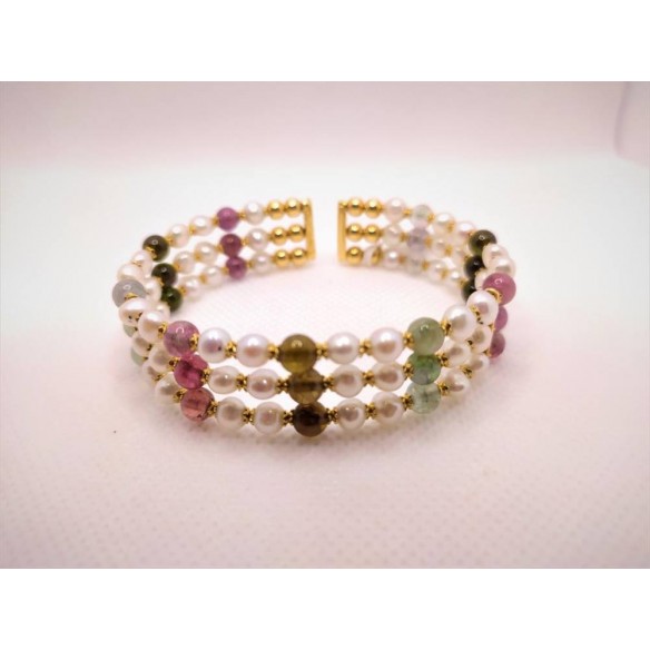 Bracciale in oro 750 con perle AKOYA e tormaline