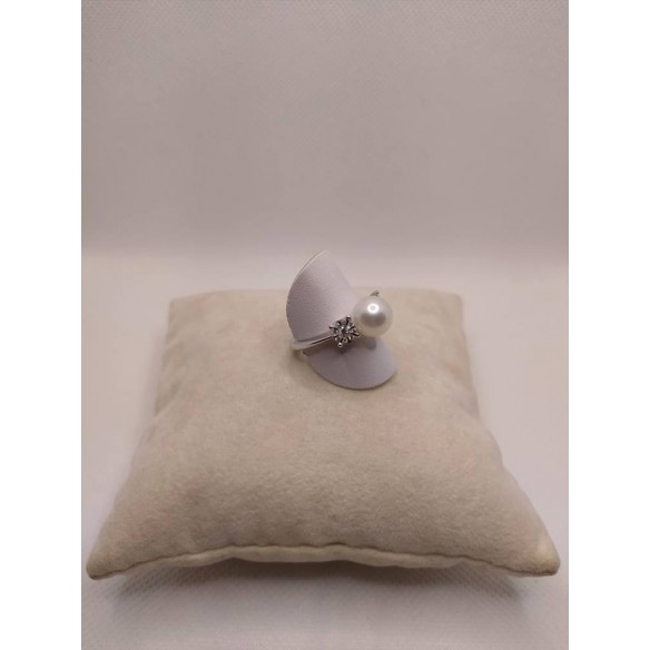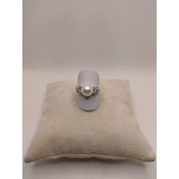 Anello in oro 750/100, gr. 4,60 , BRILL ct 0,27 GVS, PERLA Acqua dolce mm 8,5