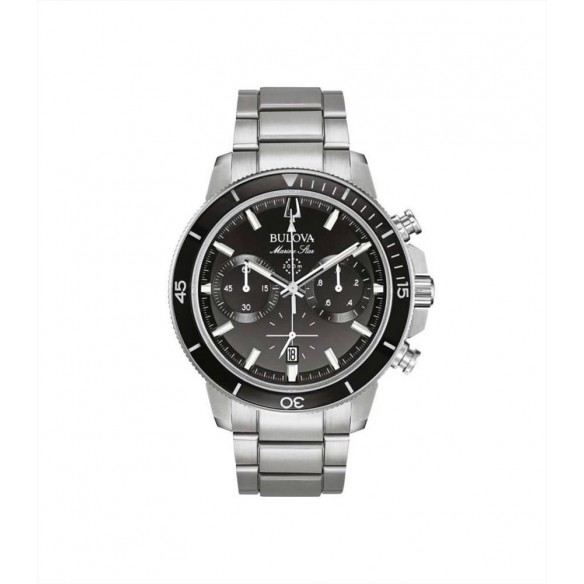 Orologio Uomo Bulova Marine Star - 96B272 Con movimento al quarzo, cronografo. La cassa è in acciaio del diametro di 45 mm. Il quadrante è di colore nero con datario ore 6, vetro minerale e ghiera girevole. Indici con superluminova e fondello a vite. Il cinturino è in acciaio con chiusura deployante di sicurezza. La resistenza all'acqua è di 10 atm.